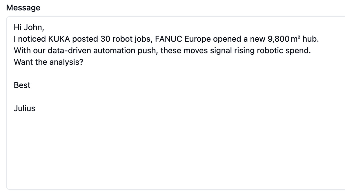 Don't just find the lead; close them with messages personalized on hundreds of signal-specific data points.